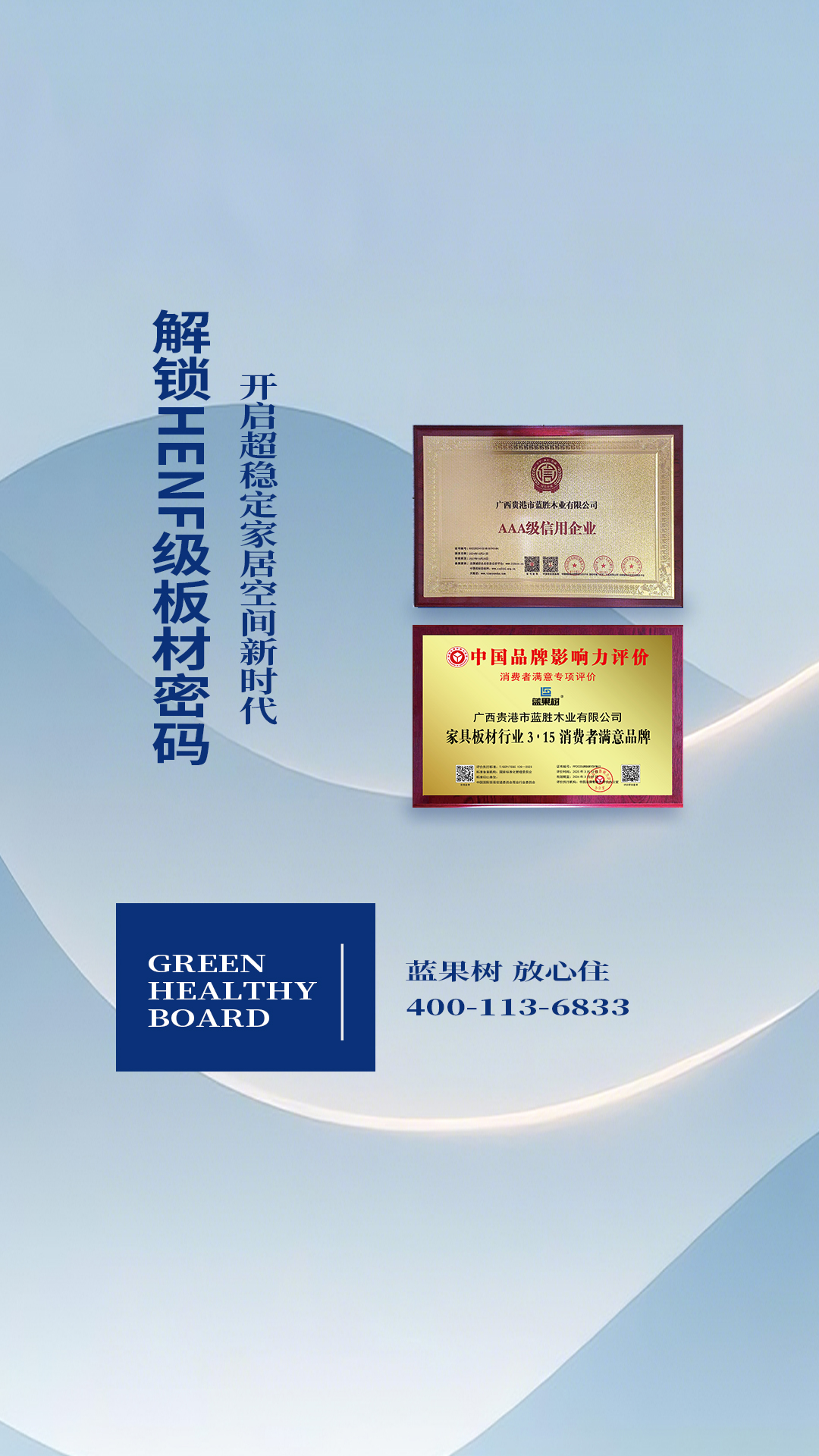藍果樹板材為廣西藍勝新材料集團有限公司旗下新型環保高新技術品牌,公司以板材研發及生產高品質產品為發展方向,擁有100條生產線,年產50萬立方米生態免漆家具板。
